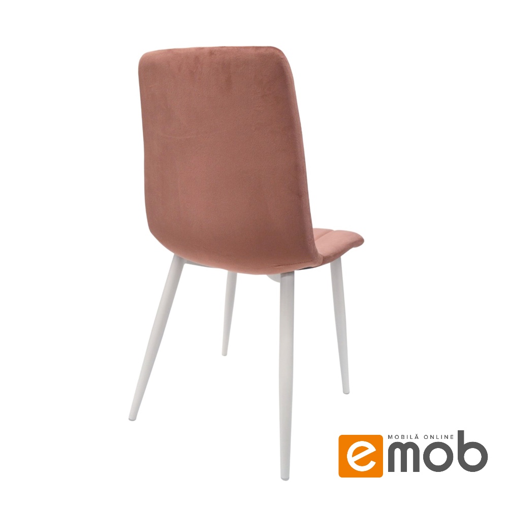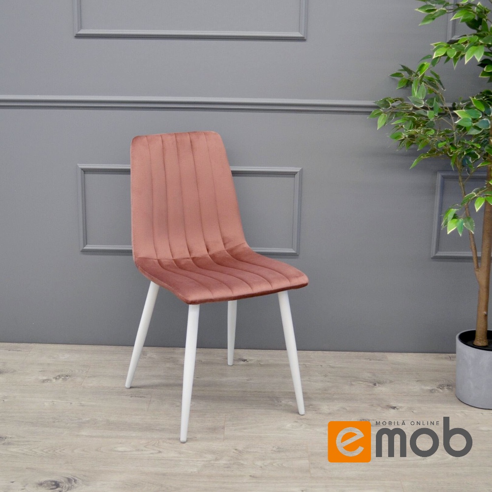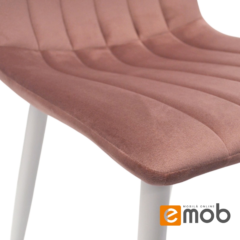 Scaunul mai este disponibil și în varianta bej, pudră, albastru, negru, verde, cu tapițerie din catifea, stofă sau piele eco.